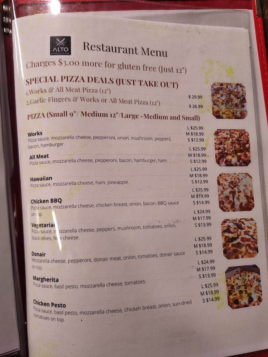 Welcome to Alto Pizza & SuShi, a delightful culinary haven nestled in Riverview, New Brunswick. Their menu artfully blends the rich flavors of Japan and Germany with a hint of Mediterranean flair. Start your meal with enticing appetizers like the crispy Saganaki or Greek Bruschetta, perfect for sharing. Dive into their impressive selection of Japanese special rolls, featuring the renowned Dynamite Roll, a crowd favorite for its delightful combination of shrimp, avocado, and creamy crab meat.